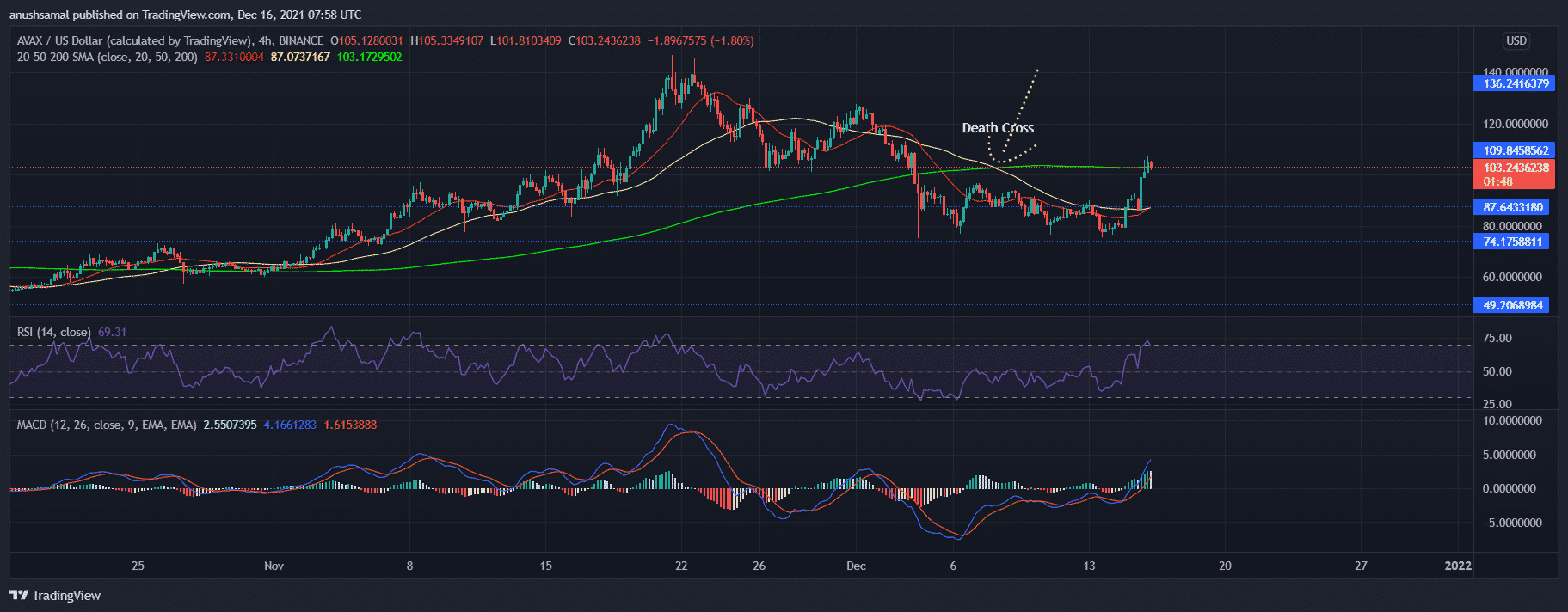 After a period of intense sell-off, as witnessed post the Death Cross, Avalanche was successful in invalidating its bearish thesis due to recent developments. The immediate resistance level of the coin stood at $109.84, and if the bulls don’t tire out immediately, the coin could find itself trading near the $120 mark. The local support level for the coin stood at $87.64, falling below which there’s solid support at the $74.17 price level.