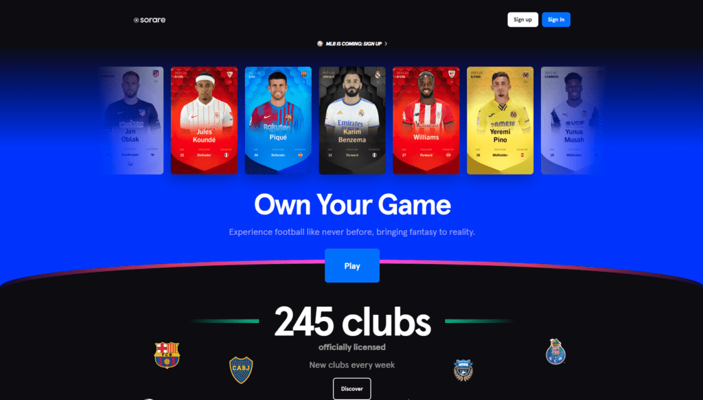 - Sorare – best Fantasy Football NFT Game