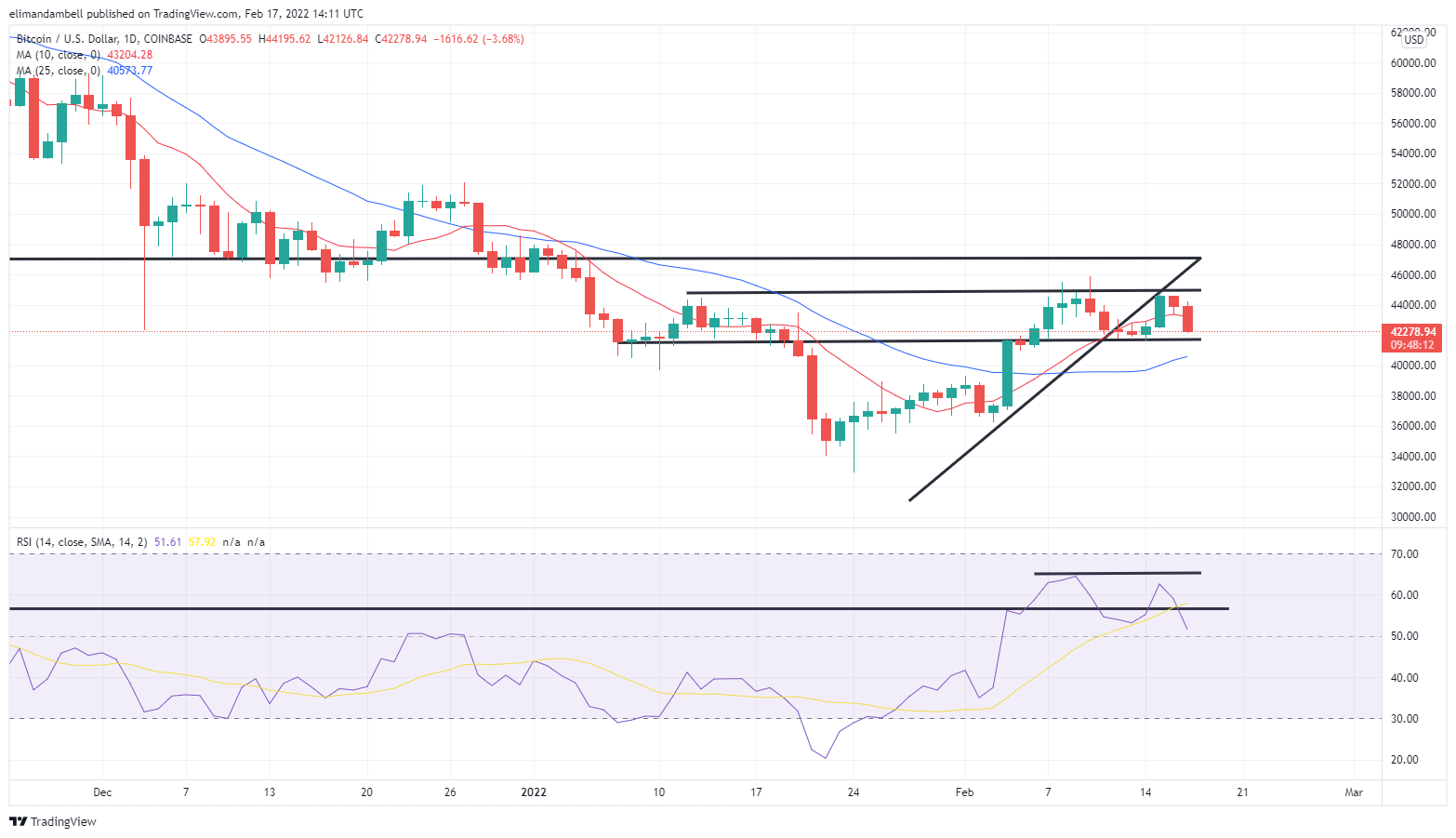Following a high of $44,309.03 on Wednesday, BTC/USD fell below $43,000 during today’s session, and is down by over 3% as of writing.