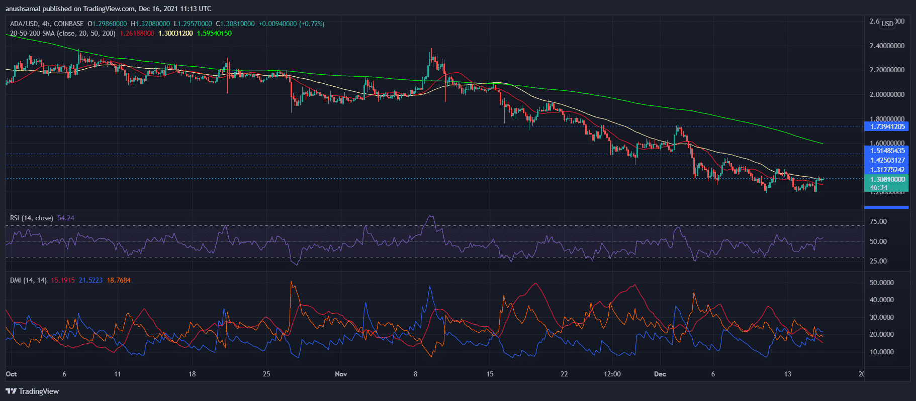 From the technical indicators, there seems to be hope as buying strength re-surfaced in the market; previously intense selling pressure stopped the bulls from surpassing the level mentioned above. The Relative Strength Index displayed bullish sentiments as the indicator shot northwards. The Directional Movement Index implied a buyer’s market and put forth a solid directional trend. Regarding the same, the bulls have pushed the prices to stand above the 20-SMA line. On the flip side, the immediate support level of ADA rested at $1.26.