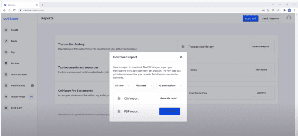 Here’s a walkthrough on how to download your transaction history on Coinbase.