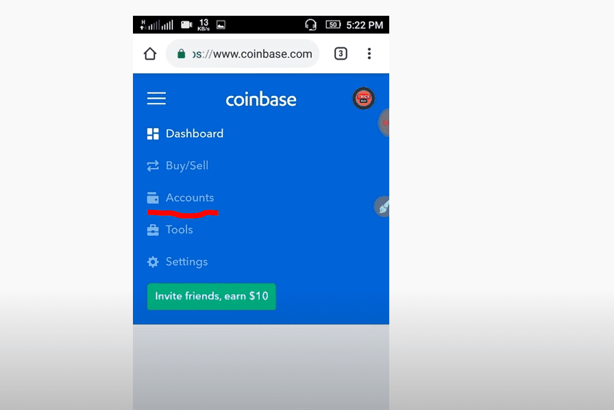- Click the Profile icon at the top left of your dashboard or the Menu icon if you use the Coinbase mobile app.