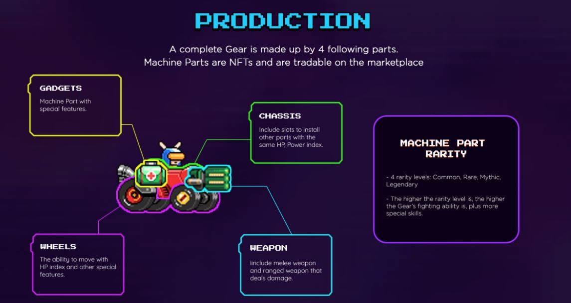 Chassis, Weapon, Gadget, and Wheels are the four primary components that make up a full Gear. Each component plays a unique role in the machine’s ability and competition for performance. The mechanism for putting it together is straightforward. To create a complete Gear, players must first select a Chassis with slots, then select various elements like as guns, gadgets, and wheels. Depending on the player’s strategy, the body pieces can be removed and simply replaced.