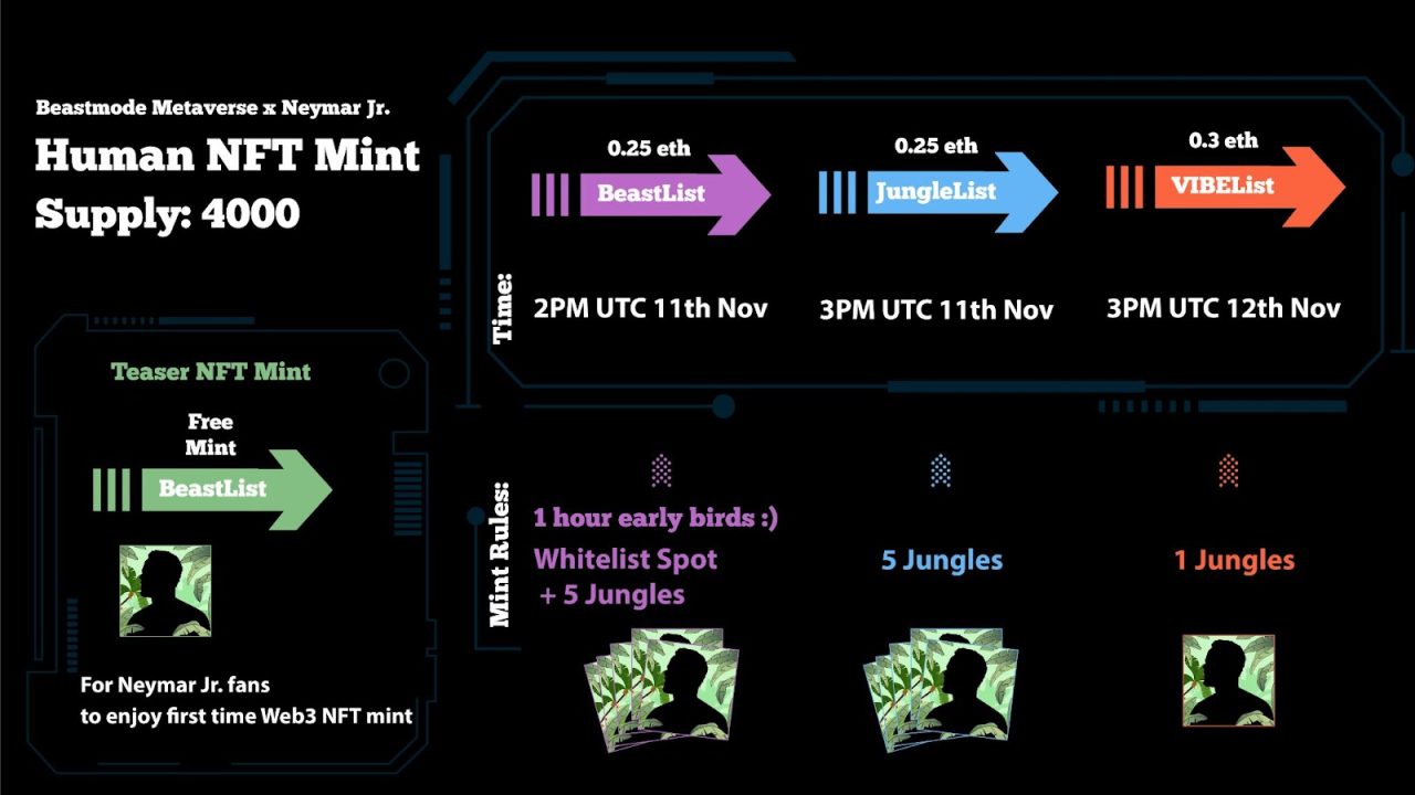Beastmode Metaverse is excited to release its next special edition drop for the biggest fans of Neymar Jr. and the project, titled ‘Beastmode Metaverse x Neymar Jr.: Episode 01 – HUMAN’, on 11 November globally. Find the times of the release in important regions below: