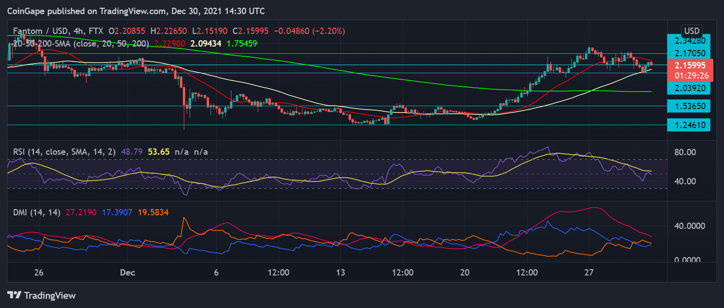 Fantom was priced at $2.15 and traded extremely close to its support level of $2.03. The indicators also portray an adverse price action for the coin. Overhead resistance for the coin was at $2.17, and if buying pressure rises, then FTM could trade above its immediate price ceiling.