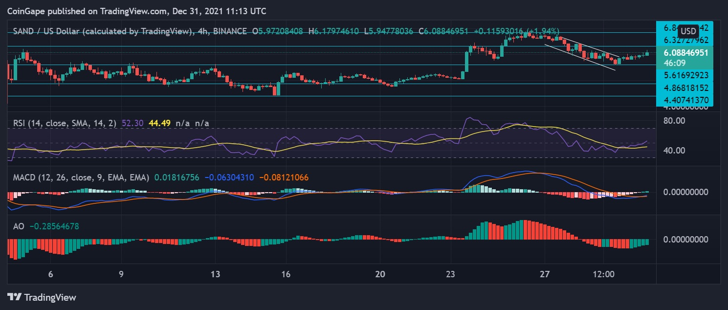 SANDBOX was trading within a descending price channel. The coin over the last 24 hours broke from the descending channel. The immediate price level stood at $6.33, going above which the coin could attempt to trade near the $6.80 price mark.