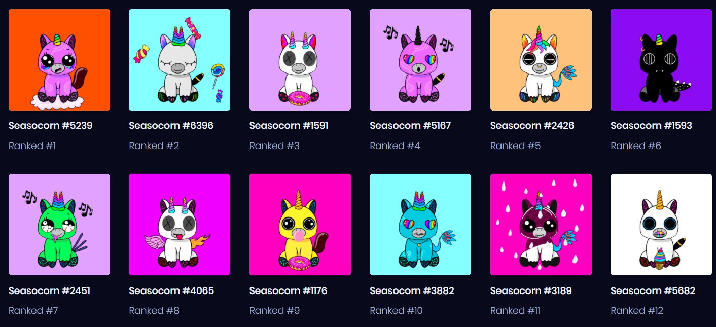 The rarest Seasocorns NFT is #5239, which is followed by #6396, #1591, #5167, and #2426 but this is relative to change as minting will resume on 7th December at 7pm UTC.