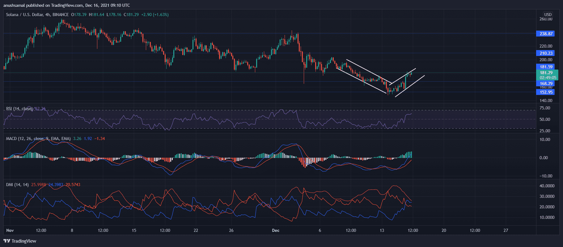Solana staged a comeback after trading bearishly over the past week and a half. At the time of writing, the coin was exchanging hands at $181.29 post gaining 8.7% in 24 hours.