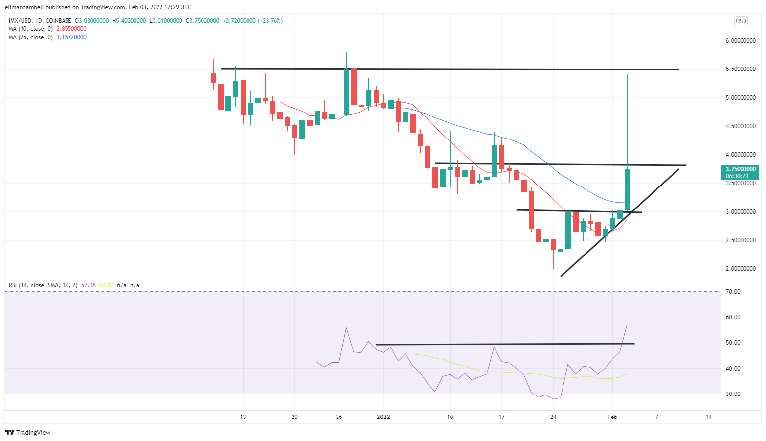 As of writing, IMX was trading over 30% on Thursday, after news broke of a partnership with Gamestop, which would see the two link to build a NFT marketplace.